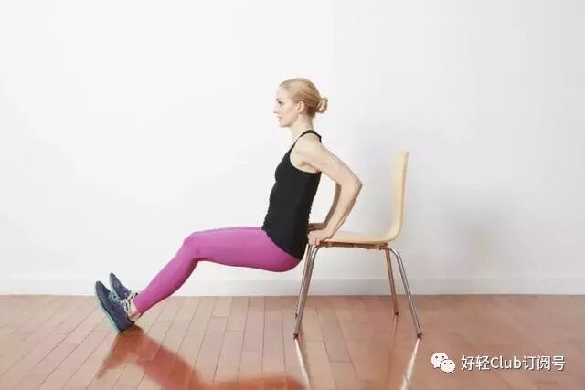 坐于椅子或者长凳边上,用手臂保持平衡。