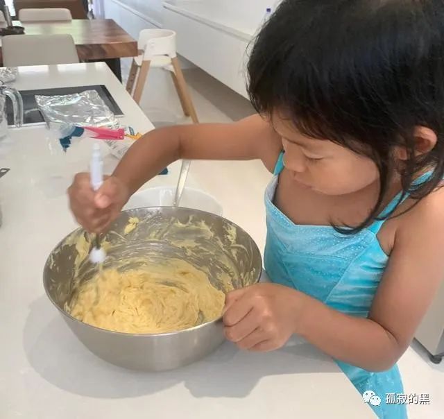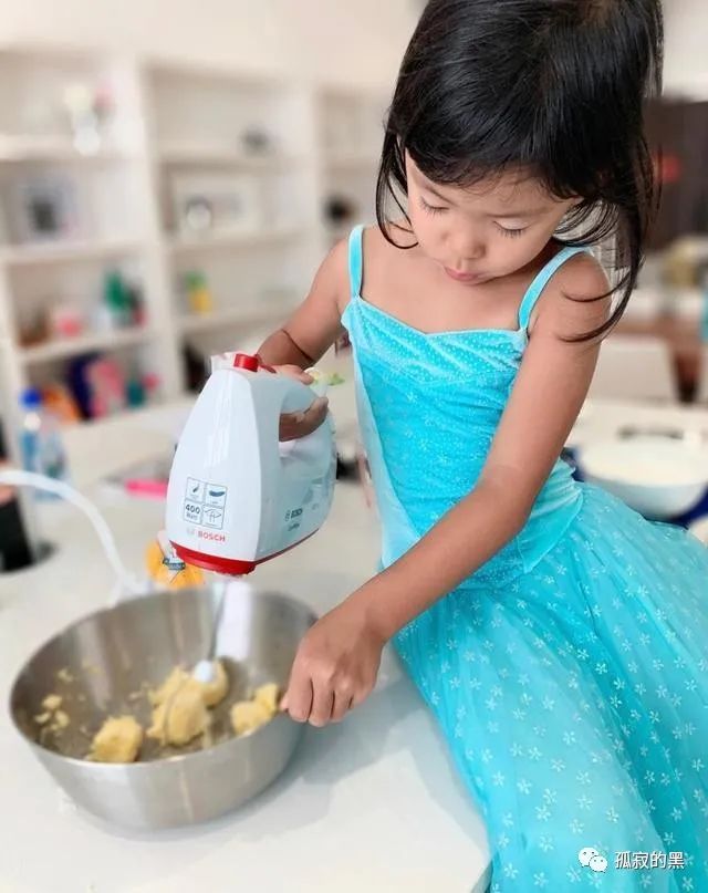 如今已经5岁的Harper别看年纪小,但是整个人可是尤为的懂事,最近因为不能像以前一样频繁的出门,小公主就自己在家里学习做起了糕点,一手握着大碗一手拿着搅拌棍使劲的搅拌着碗里的面粉,整个人动作看上去流畅有力,可是尤为的专业。
