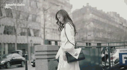 “美糖”唐嫣徜徉于香榭丽大街,感受着巴黎的慵懒与随意,肩上的黑白双拼圆扣提包成为了点睛之笔。