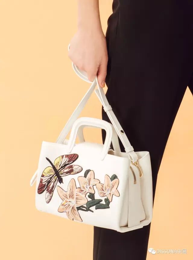 以丛林为主题,把热带花卉、蜻蜓的图案以激光镂空或者手工刺绣的方式呈现在包包上,文艺气息满满~