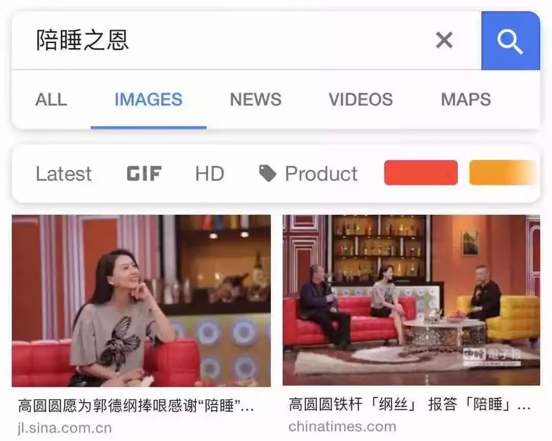 当然,感谢陪睡之恩的不仅仅是我们,还有吴京、高圆圆等大明星。随便搜索关键字,跳出来的竟然都是女神男神!