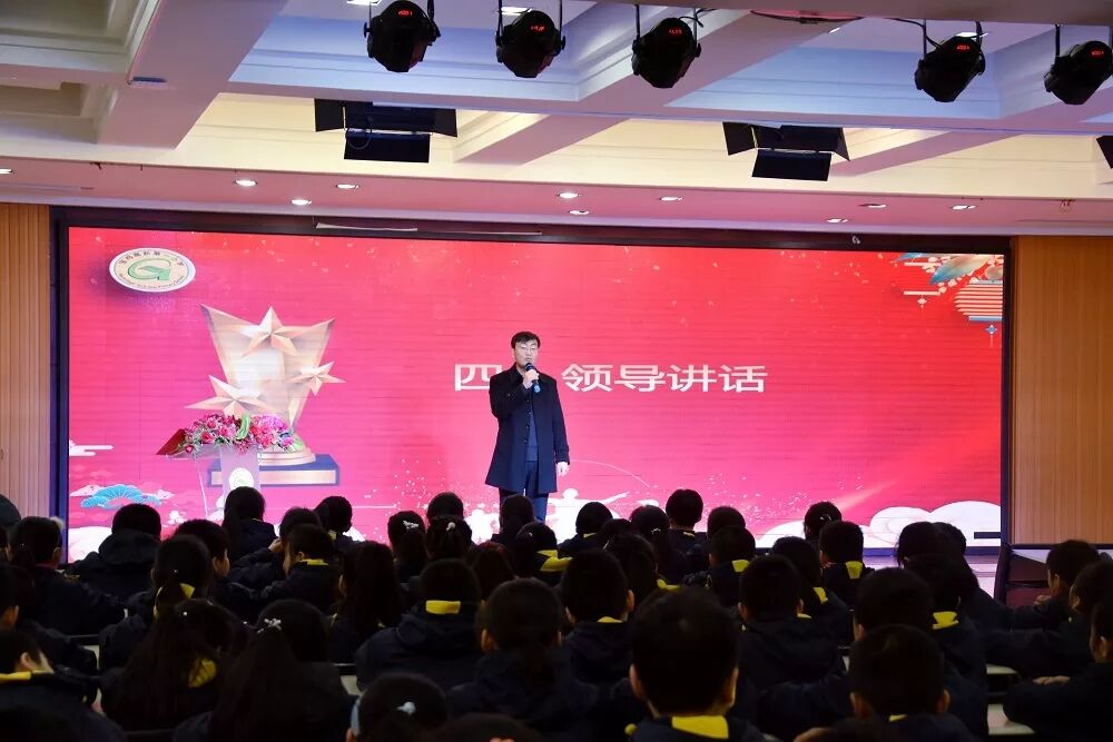 刘武宏校长在讲话中鼓励全校每个学习小组都能向优秀小组学习,力争在本学期取得优异成绩。