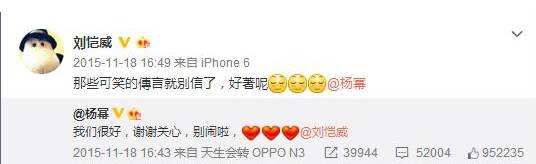 杨幂和刘恺威的微博互动确实很少,以前还会互相艾特一下,现在基本都只管自己发自己的微博了。