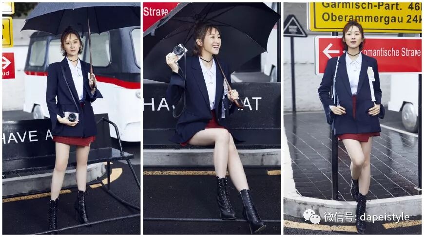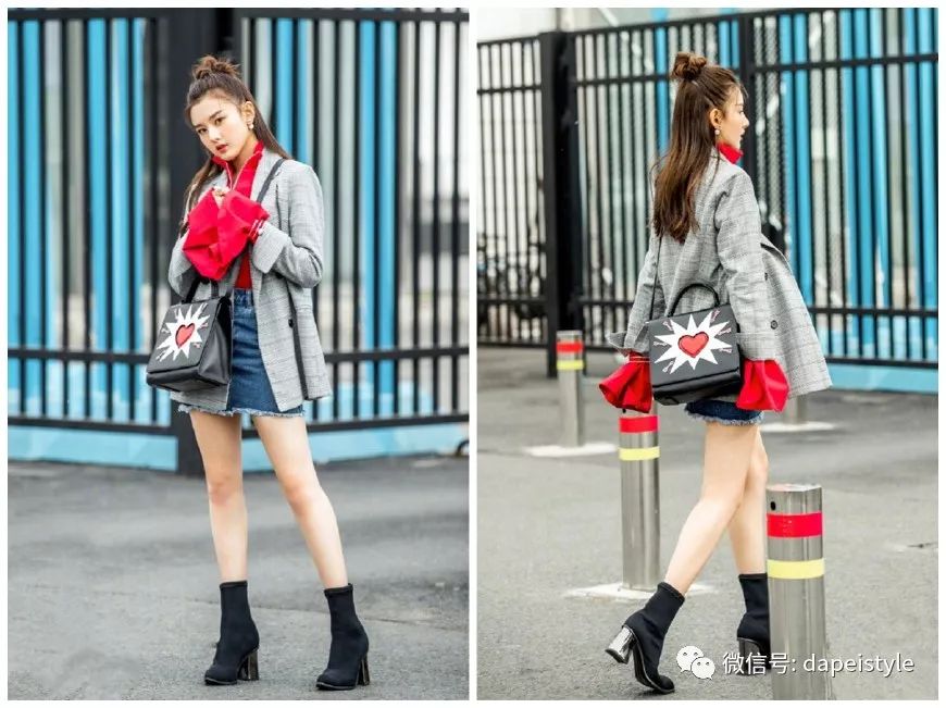 有了“皇后娘娘”秦岚的带头,“愉贵人”练练自然也紧随其后。在时尚街拍中,她身着蓝色修身西装搭配一袭玫红色短裙,脚踩黑色绑带短靴,高扎丸子头的练练身穿西装还不忘秀腿,清新中透着飒爽,时尚感颇佳!
