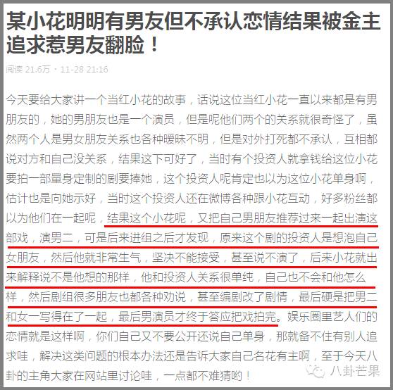 Anyway,从小花择偶也可以看出,时代真的变了。以前的女星,大都在年华逝去之后找一个富商,保全其金光闪闪的一生。这看似稳妥的做法其实风险很大,老公的资产有什么三长两短,很多人都在看女星笑话。女星因为豪门丈夫破产而复出的新闻也不少见。