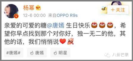 但闺蜜杨幂这个在唐嫣公开前的掐准零点的生日祝福,就有点费解了...不知道唐嫣已经找到了?
