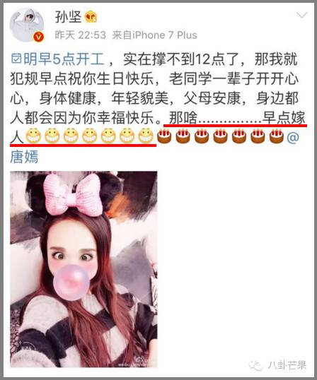 唐嫣的同学孙坚的祝福,似乎知道点什么: