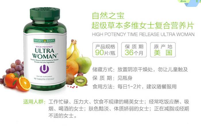 在自然之宝里面,对于女性来说,吃单独的维生素还不如吃女性综合维生素,女性综合维生素里除了常规的日常所需维生素之外,往往还添加了美容抗衰老的成分。
