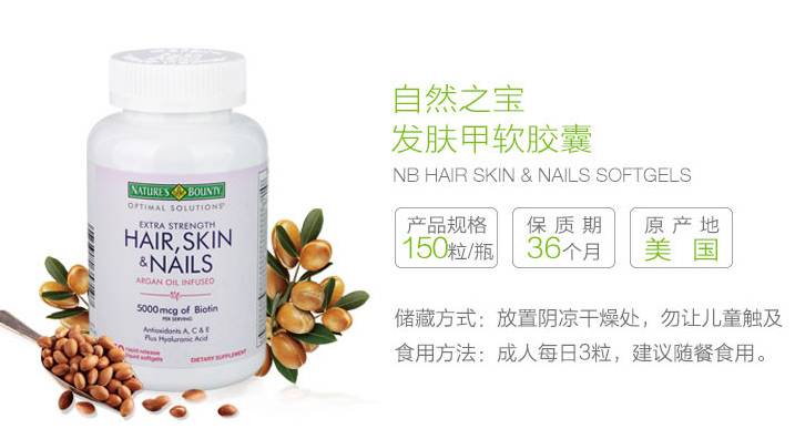 如果头发皮肤指甲格外不好的,则可以选择自然之宝 发肤甲综合营养软胶囊150粒,大概一百左右能买到,一瓶可以吃一个半月到两个月。