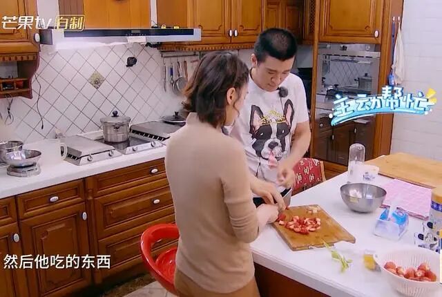 杨子下楼之后看见黄圣依正在切草莓,洗手之后也是很自然的从黄圣依的手中接过了刀,并说到我来帮你,其实这么一点小忙是不用他帮的吧,黄圣依这个时候没有事情干就站在一旁吃草莓,杨子边切还一边问黄圣依切草莓有什么要求没有,真的是特别的细心
