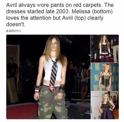 早年 Avril Lavigne 打扮比较cool,经常著裤,近年衣着愈来愈有女人味,经常著裙出现。