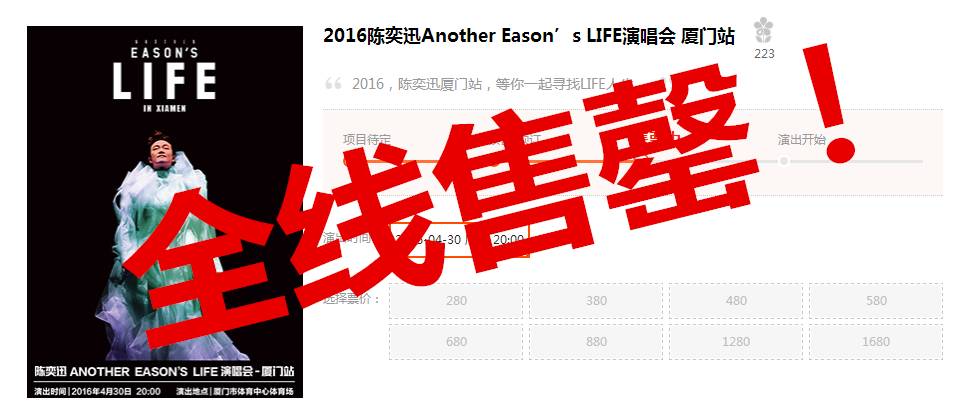 陈奕迅厦门站演唱会门票你抢到了吗?