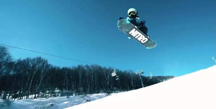 在视频中,只见穿上雪板的小蜗牛就像哪吒蹬上了风火轮,在皑皑的雪场里旋转跳跃。小蜗牛一连腾空飞过了7米、8米、9米的跳台,还在跳台上转体180度,每一跳都稳稳落地,整个动作如行云流水。