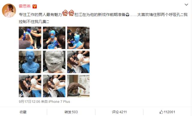 昨天,霍思燕晒出了一组杜江制作倒模的照片。