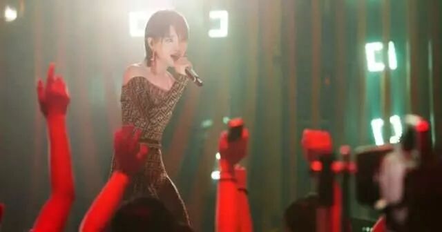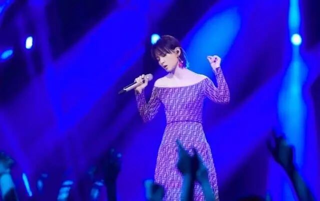 周笔畅画着精致魅惑的眼妆,搭配一对粉色水晶圆缀耳环,穿上这件老花一字肩连衣裙,低调又华丽,就像周笔畅的声音一样,美得耀眼。