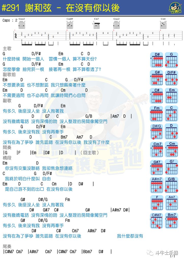谢和弦【在没有你以后】feat.张智成 马叔叔吉他教室歌谱: