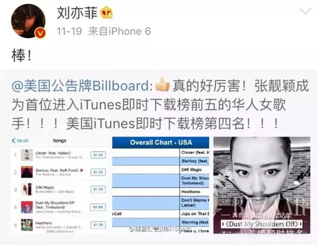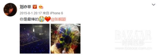 虽然低调,但是刘亦菲可是一直关注着好友的动态呢。看到闺蜜取得好成绩,自己也超级开心!