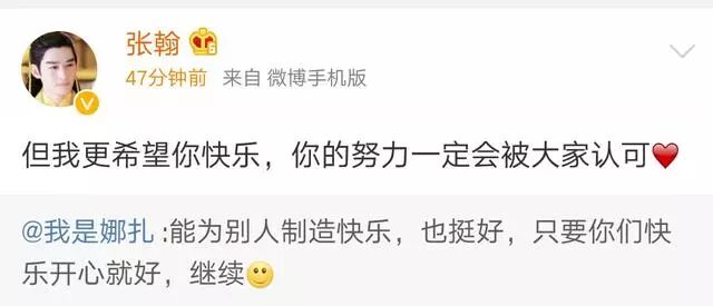 娜扎更博说“能为别人只要快乐,也挺好,只要你们快乐开心就好,继续微笑”这是她对黑她的网友说的一个回复而已,而张翰也转发了女友的这条微博