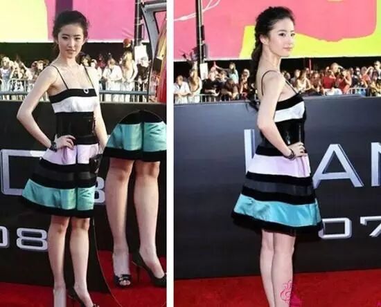 穿上吊带连衣裙后,没有曲线的小粗腿一览无遗,所以难怪刘亦菲在出席活动的时候都爱以仙气飘飘的长裙或者帅气宽松的西装来掩饰下半身的不足。