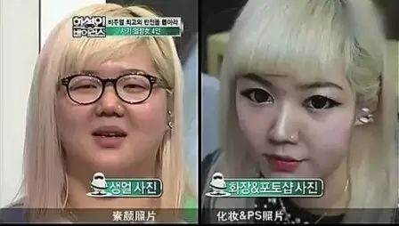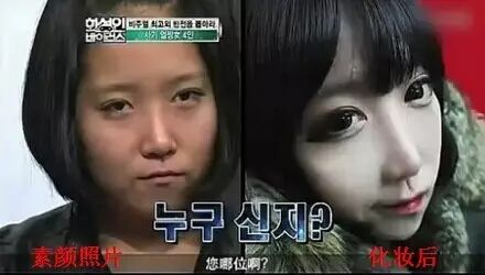 韩国一档综艺节目,就放了很多女生化妆和卸妆的素颜照片对比