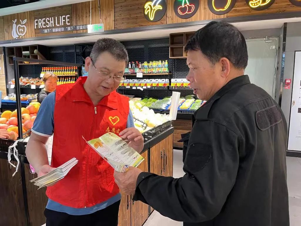 随后,工作人员进入附近商场向居民发放宣传资料并解读。
