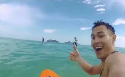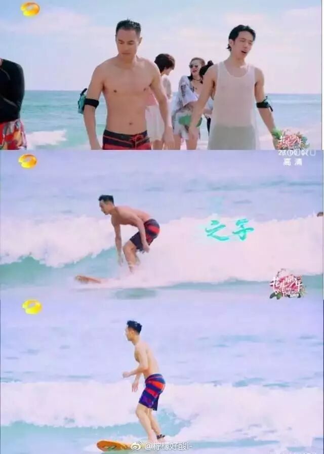 早在第二期节目杨祐宁就解锁了冲浪技能点,man到炸!!