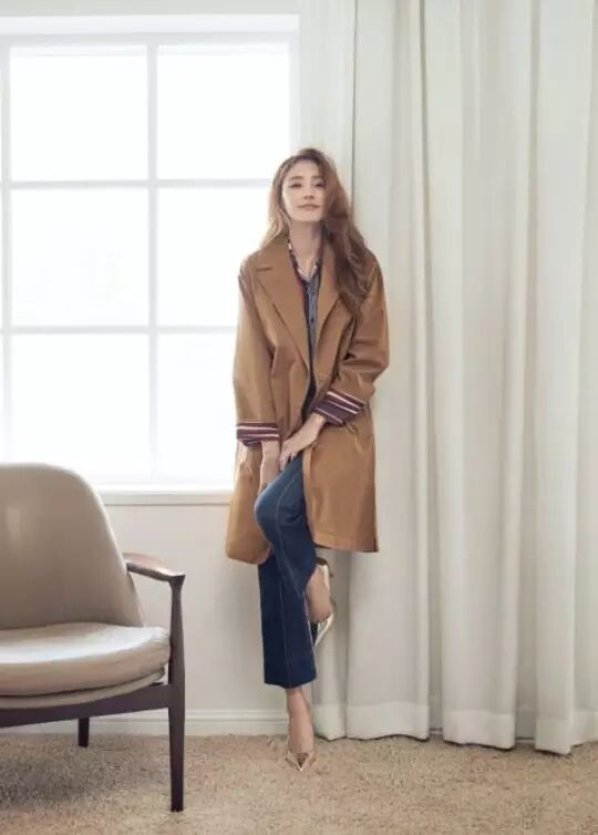 不仅如此,韩彩英还试穿了伊莎贝尔的各种外套型服饰,从英伦式风衣到开衫风衣再到马甲式风衣,展现了时尚的秋日穿搭。