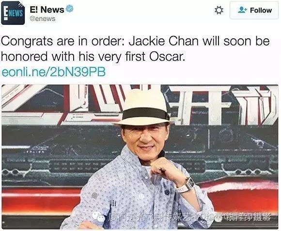 作为好莱坞最为知名的功夫巨星,许多导演都是成龙的粉丝,《僵尸肖恩》导演埃德加·怀特在个人Twitter上表示:“非常高兴学院今年能授予成龙终身成就奖,他是动作电影界的传奇,获奖实至名归。”