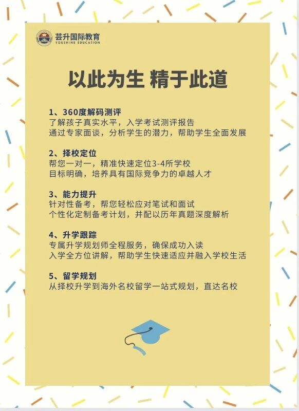 芸升提供一站式国际学校:择校备考、升学规划、国际课程、留学申请、竞赛等。