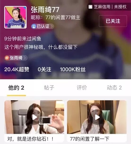 就在前几天,张雨绮强势入驻闲鱼,一言不合就给网友送钻石?!!!