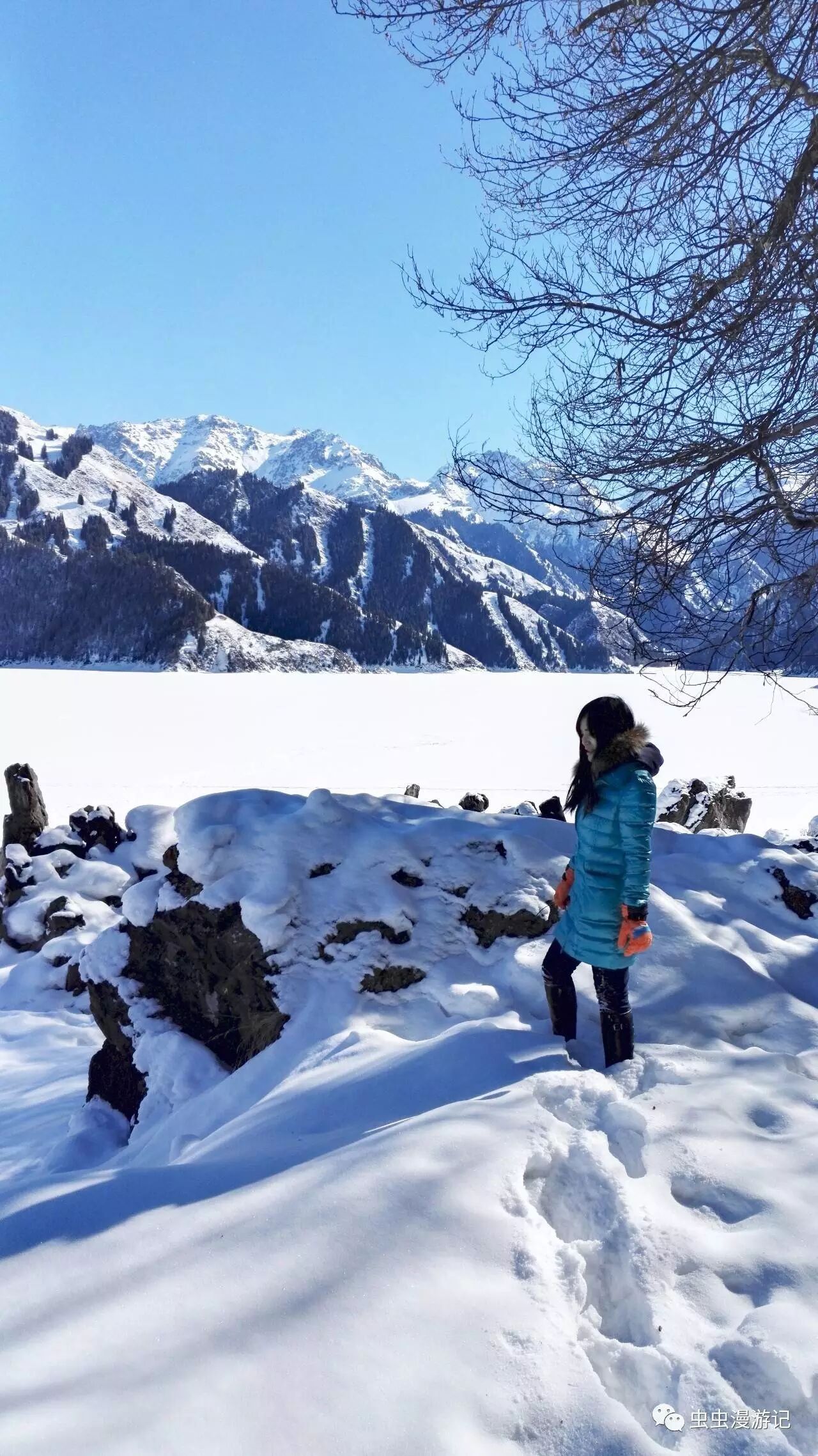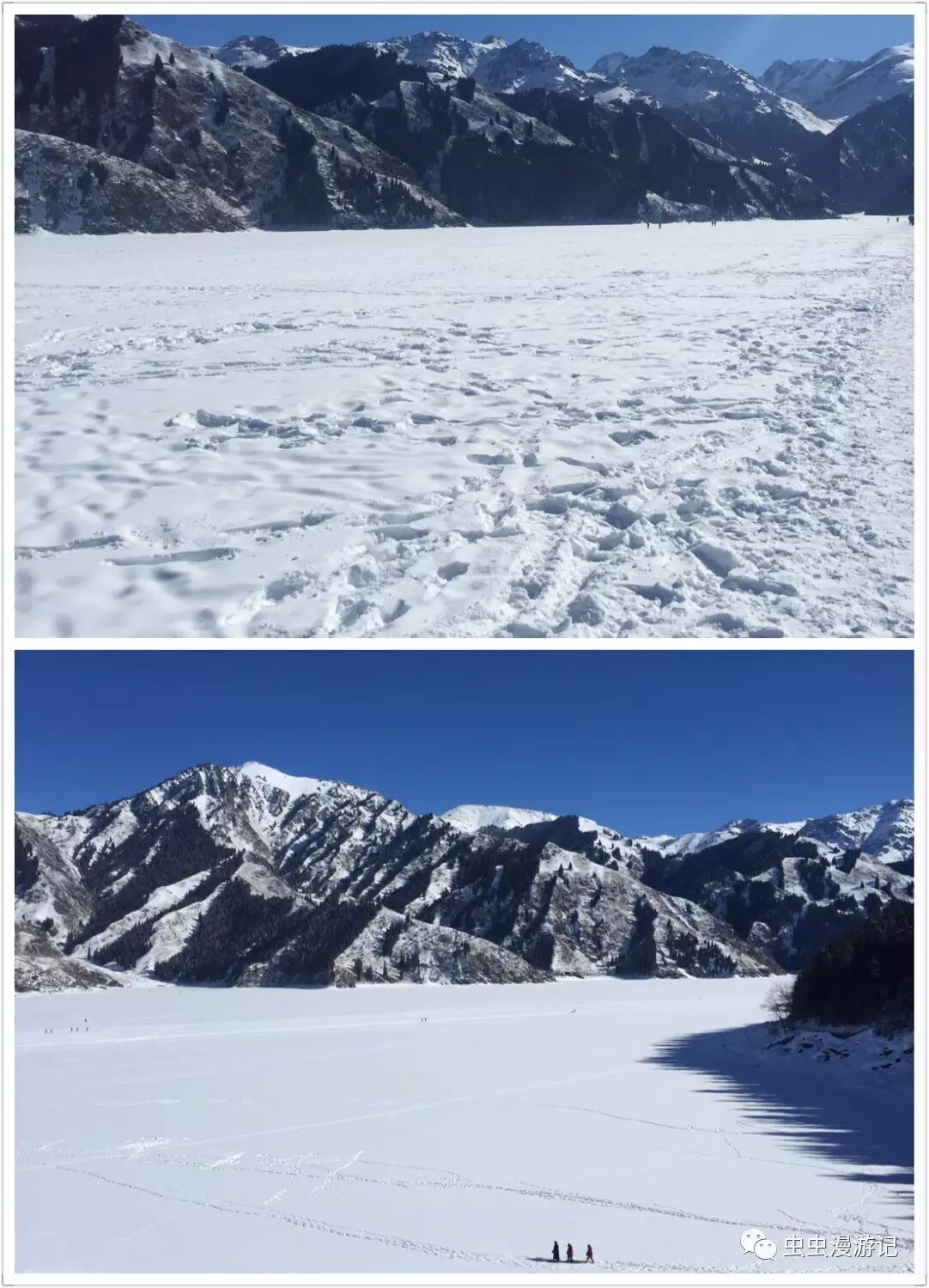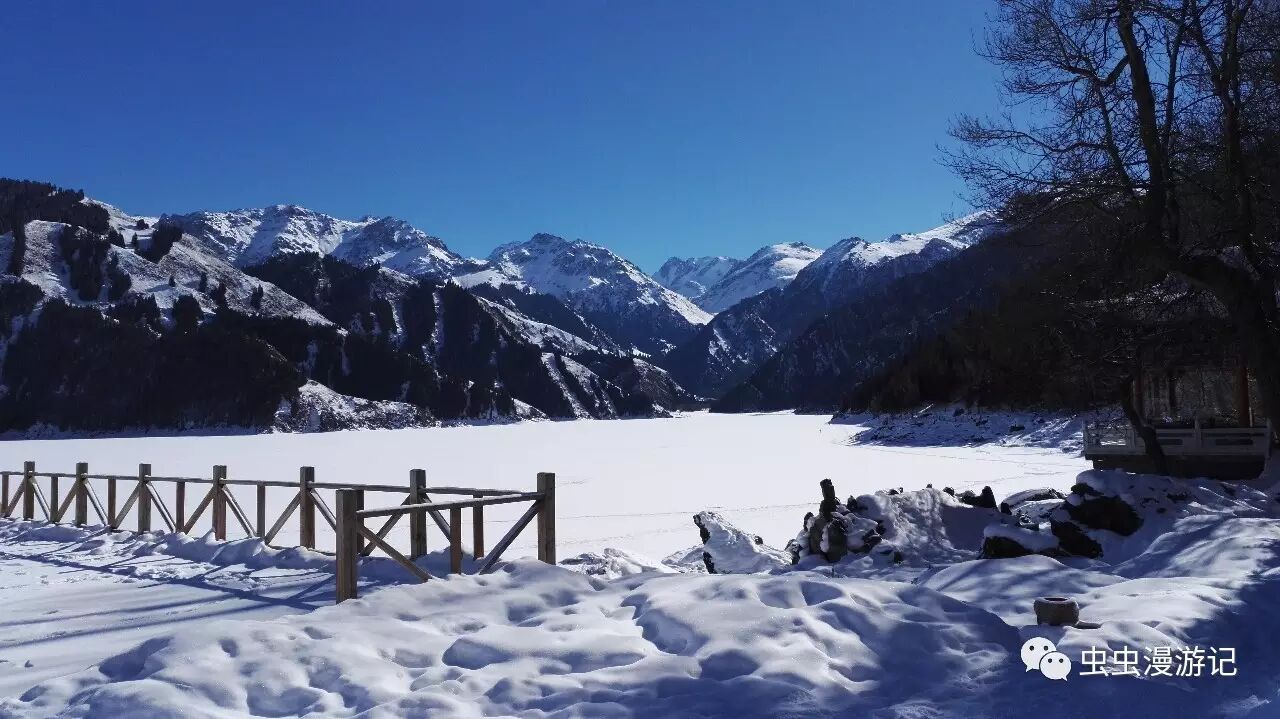 整个天池已被冰冻三尺,见下图