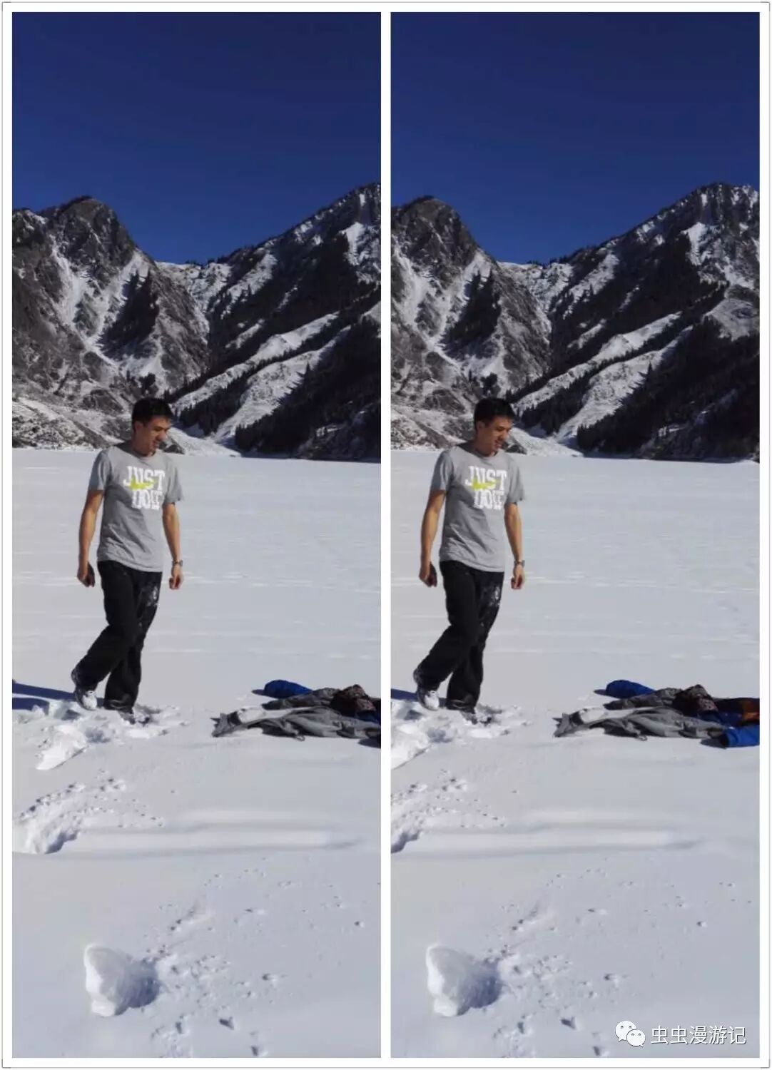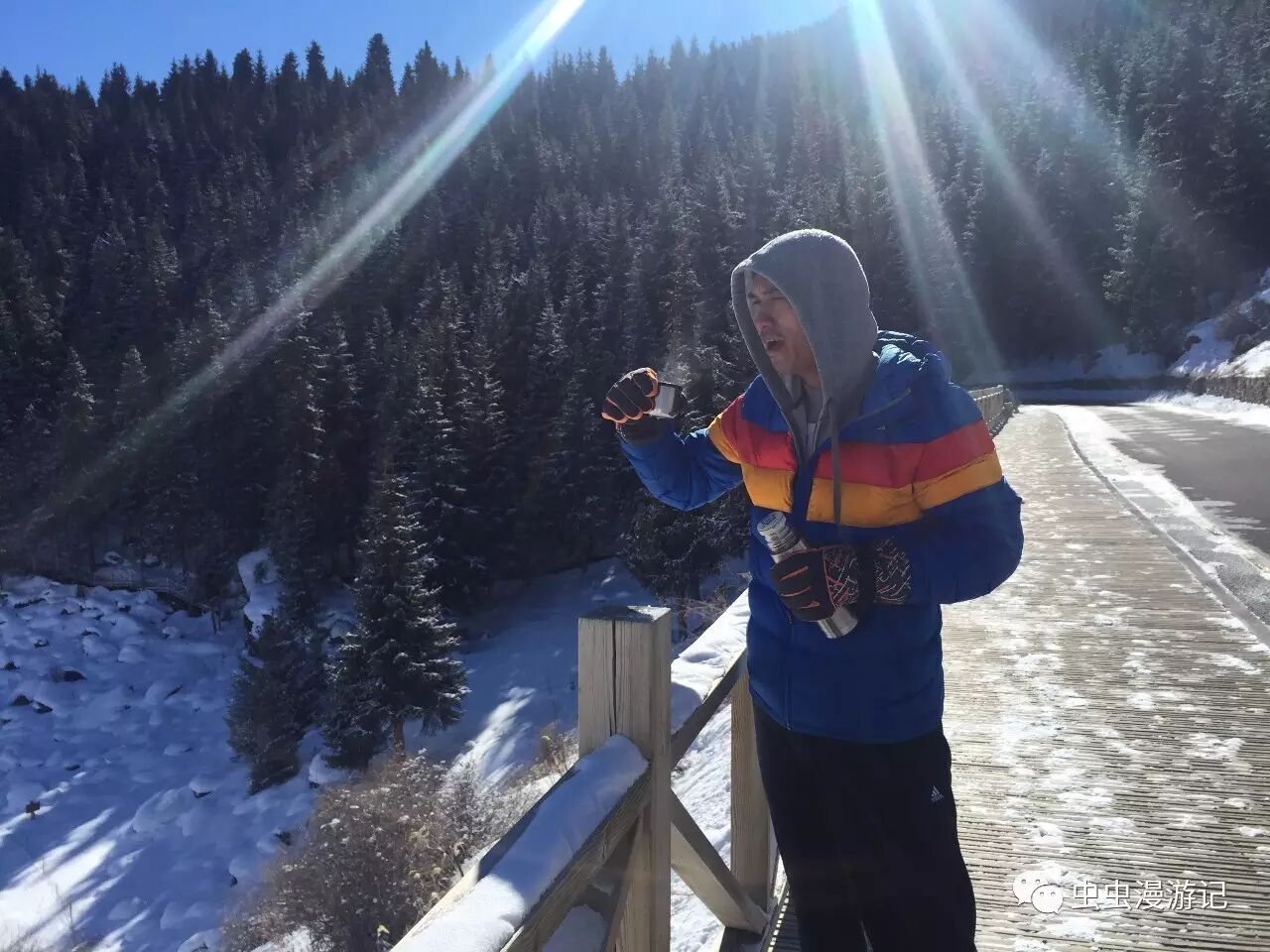 但是你没看到的是他拍完照后冻的张牙又舞爪的样子,