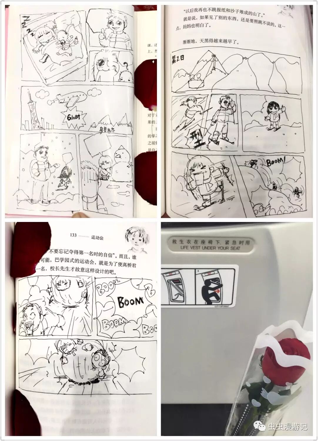 飞机上的无聊时光陈先生在我的书上随手画漫画