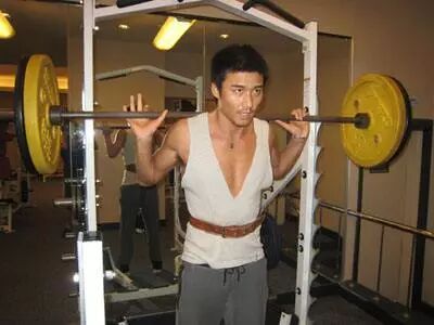 (胡兵早期健身照)