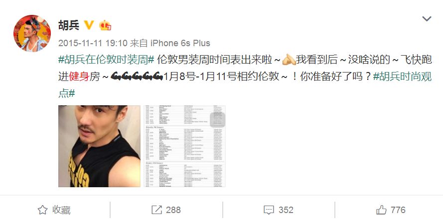 要知道,胡兵为了备战这个时装周
