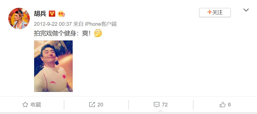 胡兵的身材再一次引爆了热搜