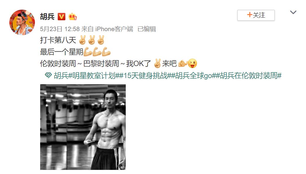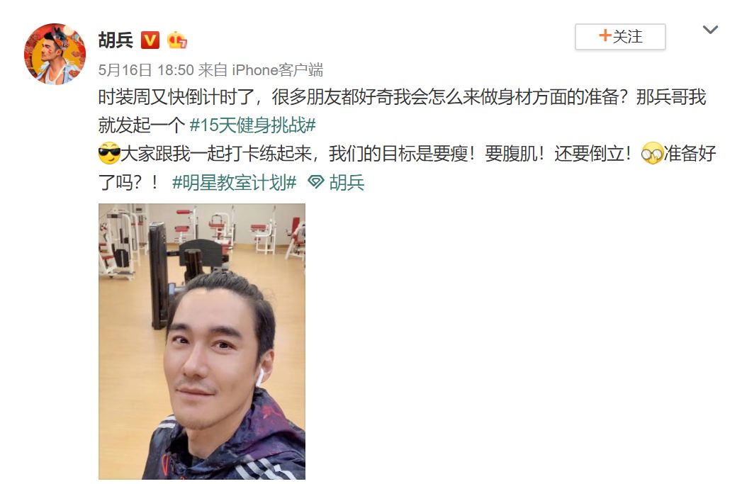 胡兵开启了15天疯狂健身