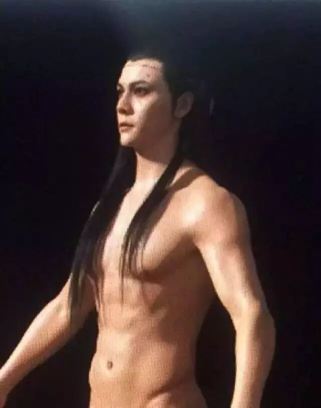 杨幂半跪在前面,陈伟霆赤身裸体的从湖边走到她的面前,好像还用手摸她头来着。