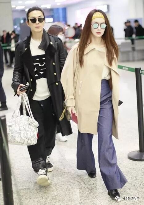 李承铉身穿黑色长款风衣戴着墨镜酷炫十足,戚薇同样是米色长款风衣加身更是气场十足,两人把机场当成T台,一前一后表情冷酷,颇有国际超模的气场。