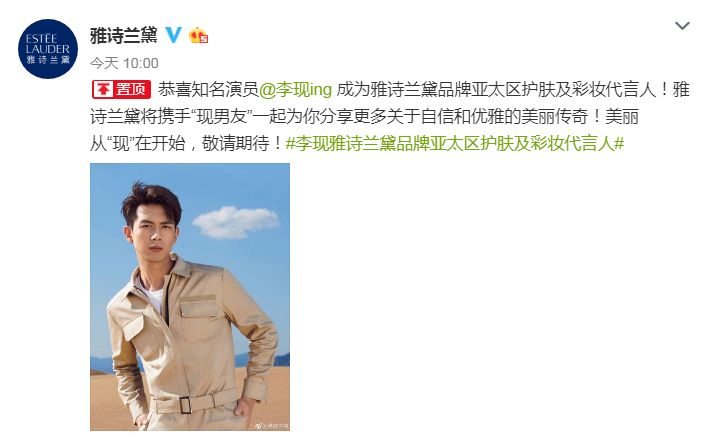 李现与品牌的合作级别相对较高。此前,李现已经拥有多个代言、推广大使等正式头衔,比如彪马以及苏泊尔轻量保温杯的代言人身份,还有戴尔品牌大使、荣耀潮时尚大使和肯德基美味体验师。今天,李现的时尚资源再下一城,他正式成为雅诗兰黛亚太区护肤及彩妆代言人。