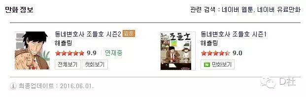 据NAVER上的信息显示:原著漫画《邻家律师赵德浩》从2014年3月6日开始连载,第1季已完结,评分9.0;第二季从今年3月9日开始,目前评分9.9。