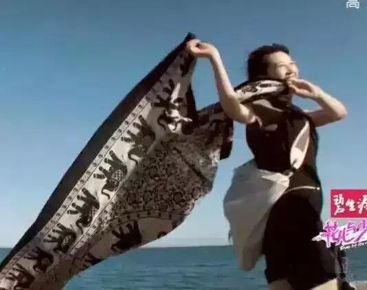 买到喜欢的丝巾后在海边烂漫的奔跑。
