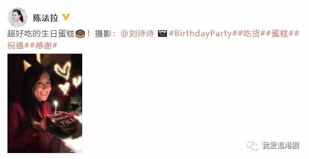 适逢36岁生日,闺蜜刘诗诗为陈法拉送上生日蛋糕,原来啊,当年他们因为合作内地剧集《风中奇缘》而结缘,继而成为好友。