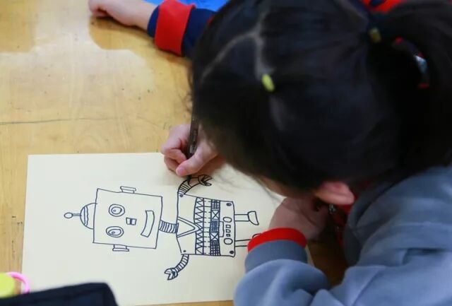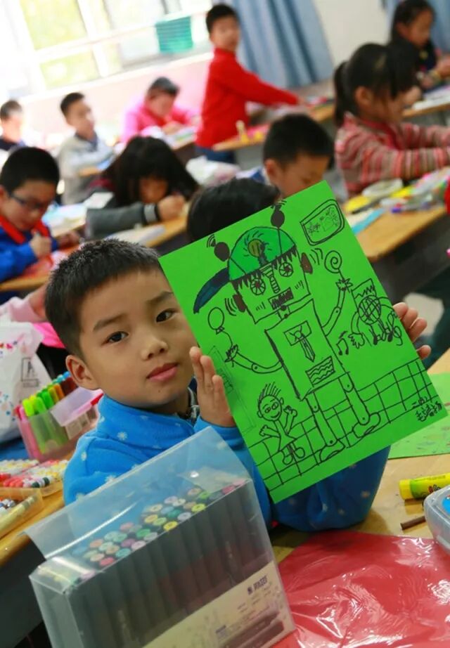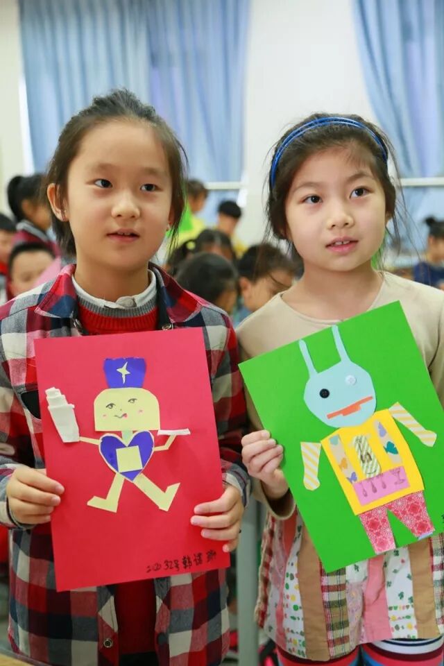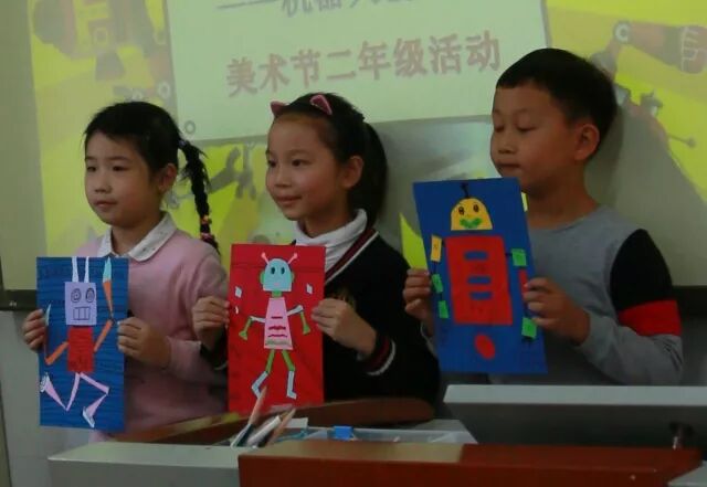 二年级的美术节活动是“机器人总动员”。同学们利用彩纸拼贴,绘画,纸盒立体制作等方法,大展手脚,充分发挥自己的艺术才能,制作出生动的机器人形象。你看,他们的神情多么专注啊!还有什么活动能使孩子们如此快乐地沉浸在创作中呢?只有画画啊!也希望这样有趣的活动大家都来参加!