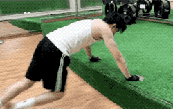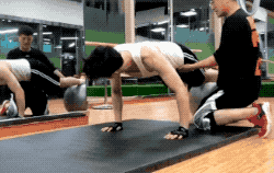 为此他没少训练,弹力球反向卷腹、器械卷腹、俯卧撑提膝等动作每天都坚持做....