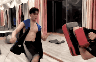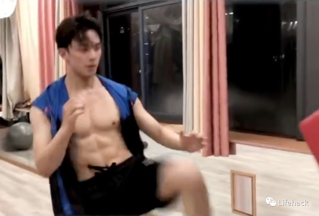 即使到了剧组,拍摄间隙他也会做上几组虐腹动作,让自己的腹肌时刻在线!