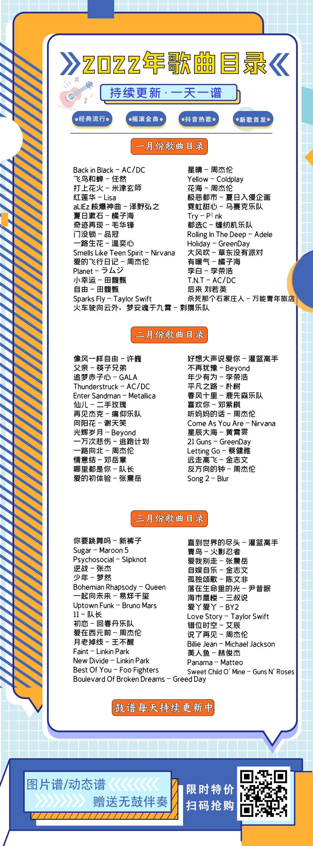 都会更新分享一首鼓谱(动态谱/图片谱/无鼓伴奏)