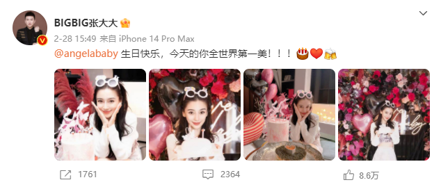 一如既往地,张大大像杨颖的死忠粉一样,晒出对方的照片,赞叹其是世界第一美的女孩。