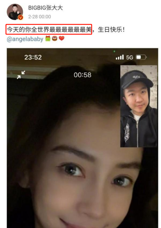 为了给杨颖安慰与祝福,张大大非常用心地在凌晨卡点发布祝福,而且在此之前还通过视频聊天的形式在深夜陪伴对方。