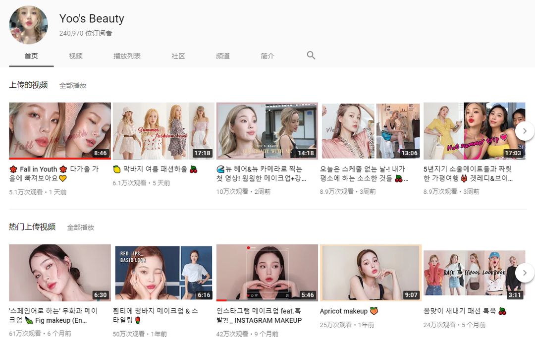 还有一位就是超特别的Yoo——韩国美妆博主Yoo是完完全全的单眼皮小眼睛、塌鼻梁、长脸蛋、厚嘴唇,可是这样不完美的五官集合在一起却出乎意料的和谐耐看。Yoo不仅长相让人感觉舒服,化妆手法也是轻柔细致,看她的妆教视频仿佛是一种享受,而且能学到不少修饰五官的化妆手法。